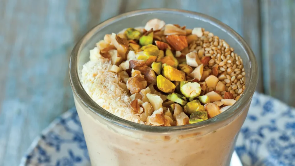 Blend all ingredients until smooth. Serve chilled for a refreshing and nourishing iftaar drink.
